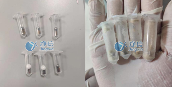 上圖為1分鐘的研磨效果,已經(jīng)完全研磨完成,達(dá)到老師預(yù)期效果。研磨管一次可以做24個樣品,經(jīng)過全自動冷凍組織研磨儀的研磨處理后,蘋果樹枝條能夠快速被研磨成細(xì)小的顆粒,從而方便后續(xù)的分析。同時,該研磨儀的運行過程中不會引入外界污染,從而保證了樣品的純度。經(jīng)過多次了解和對比所以老師們選用凈信研磨儀代替人工處理。效率高,效果好。成功的解決了老師的研磨問題。
