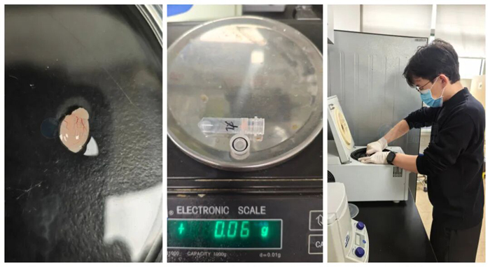實驗開始時,我們?nèi)〕?.06mg的小鼠睪丸組織,剪碎后加入磁珠和1mL解離酶,隨后將試管放入提前預(yù)熱好的儀器中,選擇對應(yīng)組織的專用程序——按下啟動鍵,儀器就進(jìn)入自動工作模式。
