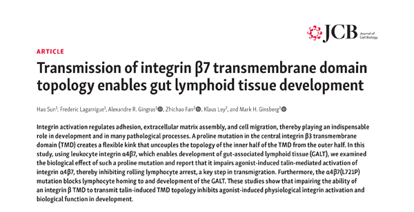 2020年10月27日,加州大學(xué)圣地亞哥分校醫(yī)學(xué)院,聯(lián)合法國圖盧茲大學(xué)和康涅狄格大學(xué)衛(wèi)生院的科學(xué)家在Journal of Experimental Medicine(JEM) 上在線發(fā)表了題為Distinct Integrin Activation Pathways for Effector and Regulatory T cell Trafficking and Function的工作(來自作者為孫昊博士)。