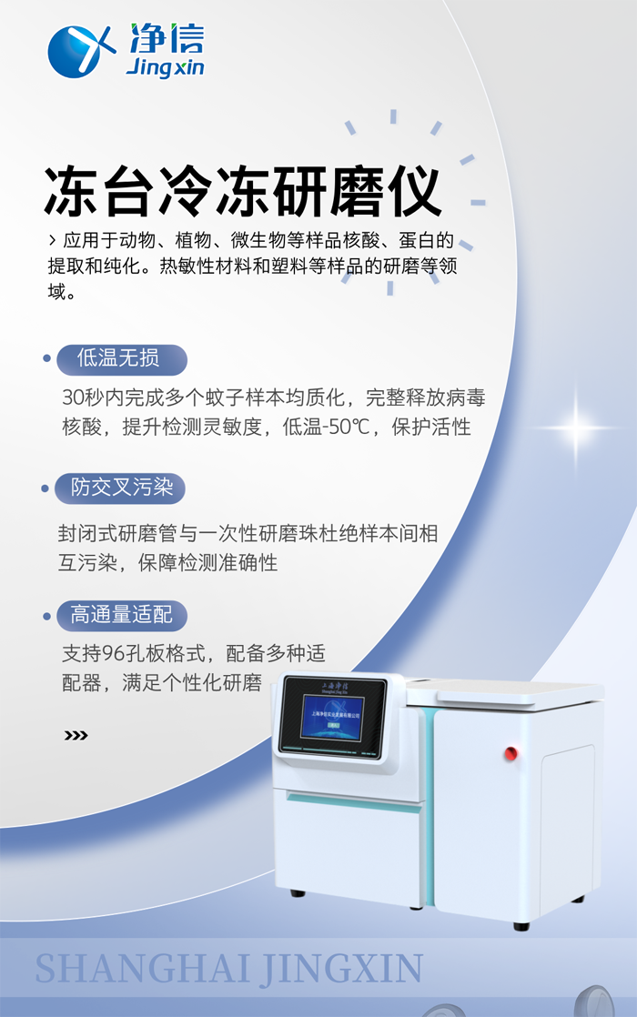 凈信凍臺冷凍研磨儀以標準化、自動化的研磨方案,助力疾控中心構建更快速的蚊媒病毒響應體系。它不僅解放了實驗室人力,更通過提升樣本處理質量,為流行病學研判提供可靠技術支撐,默默守護著公共衛生安全的第一道防線。
