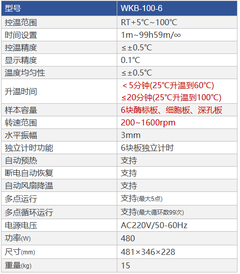 3. 采用熱蓋加熱技術;支持6塊板獨立計時功能(WKB-100-6支持)